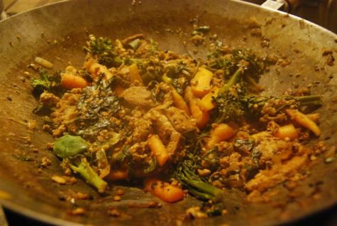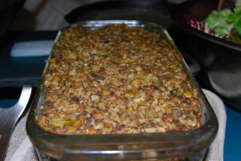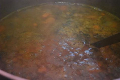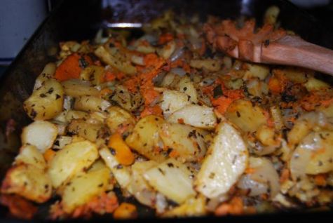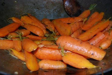 Lentil casserole and Carrots sauted and tossed with a honey glaze