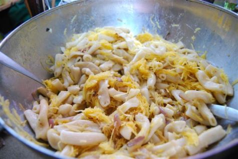 Fresh pasta with spaghetti squash, garlic, olive oil and chanterelle mushrooms