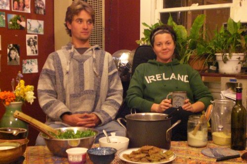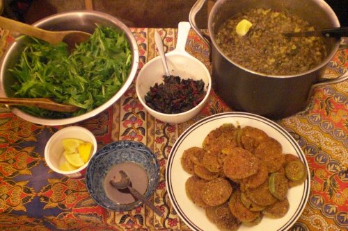 Cooks: Michelle, Jono Dessert: Zucchini, chocolate, raisin bread.Lentil soup and Fried green tomatoes