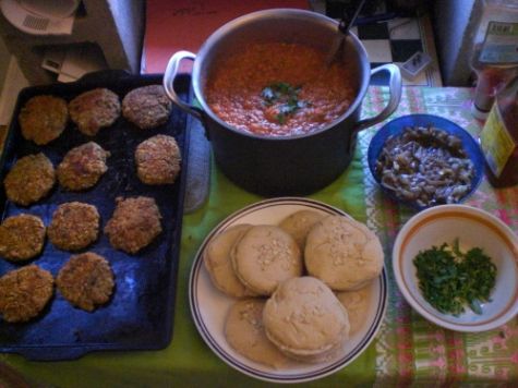 Cooks: Jono, Erin Dessert: Oat cookies Note: If you are serious about making vegan matzoh balls, check out this video I found (after I made the meal of course). and here’s how the vegan matzoh balls looked before boilage..