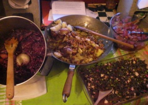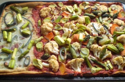Cooks: Monica, Maria Many pizza pies. Toppings included: tomato sauce, onions, garlic, mashed potatoes, asparagus, cauliflower and carrots. Salad Dessert: Sweet peanut butter cookies