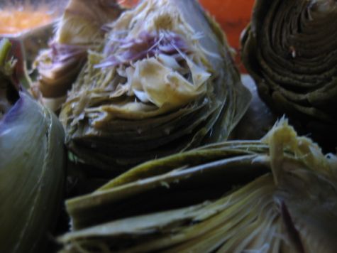*Minga — (Michelle’s version of tinga) see september reicpes *Tortilla Calzones — filled with broccoli, carrots, asparagi, in a rosewater and ginger syrup sauce. *Aritchokes